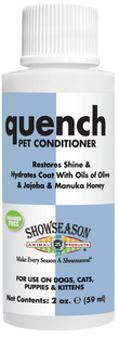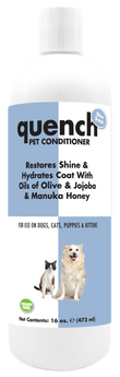 Quench Conditioner is an easy-to-dilute, ultra-moisturizing pet conditioner for bathing and septic systems. It contains Manuka Honey, Jojoba Oil, and Olive Oil, making it perfect for deep conditioning, de-matting, and detangling all coat types. Now scented like our delightful Pink Sugar Pet Cologne, your customers will adore how Quench Conditioner leaves their pets smelling sweet and feeling silky smooth!